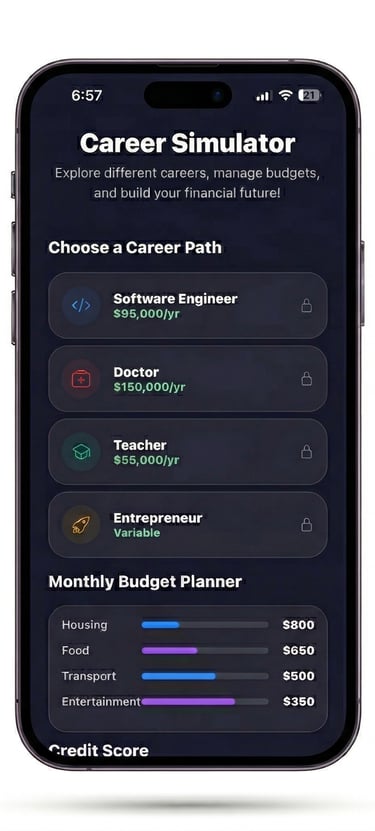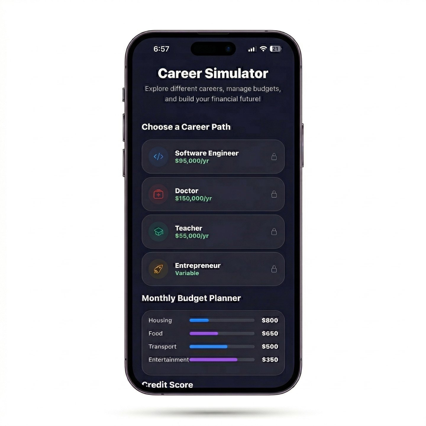 Manage a Real Budget Housing, food, transport, EMIs, learn where your money actually goes every month.